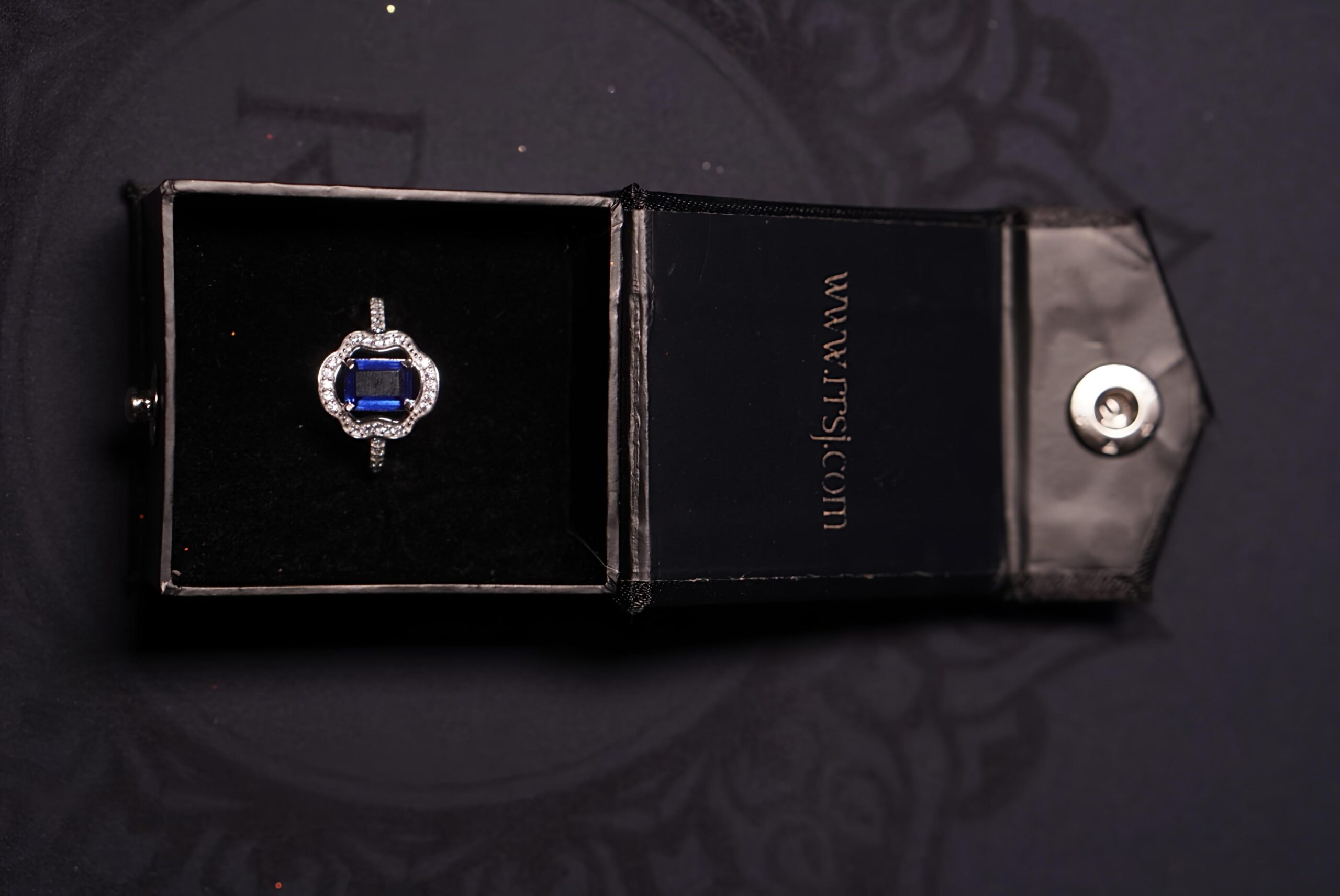 Elevate your elegance with our handcrafted 925 silver ring, featuring a rich royal-blue center stone set in a sparkling halo design.