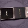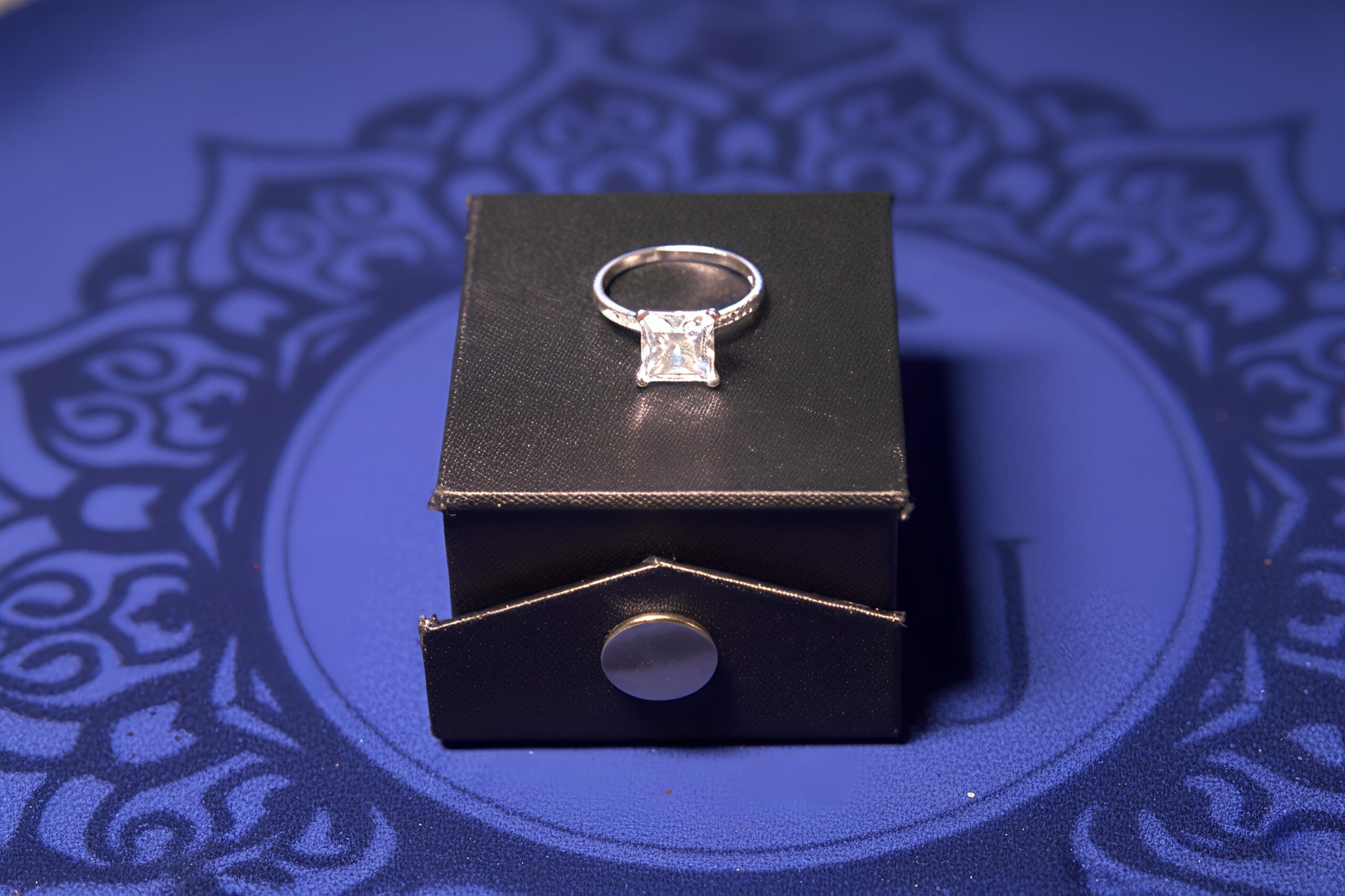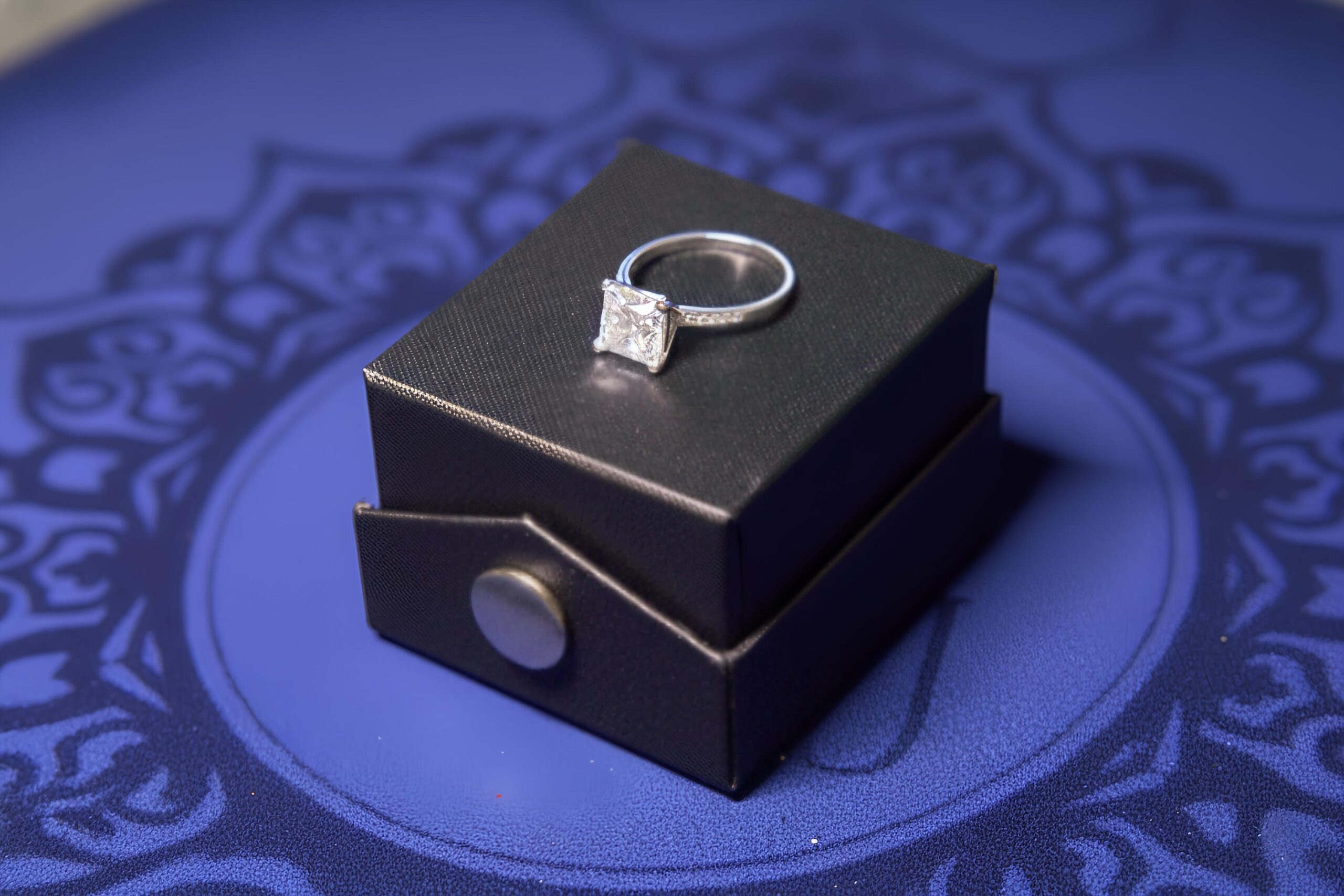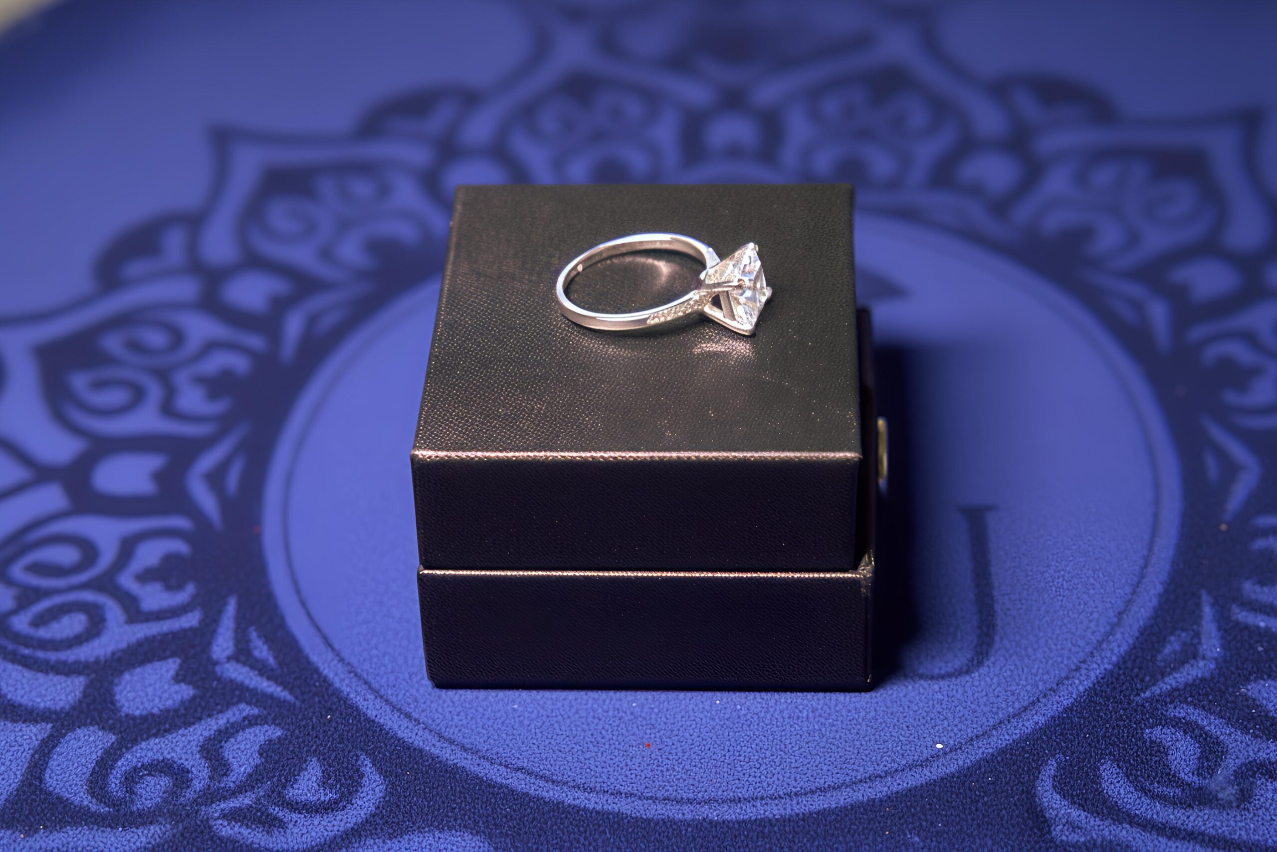 This is an exquisite ring designed to highlight the brilliance of its central gemstone, a popular and modern style for engagement rings.